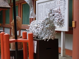 楼門右の馬の形をしたおみくじ結び |