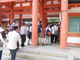 中門でお参りする一般客の列が楼門まで続く | ||