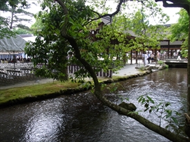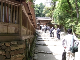 二の鳥居をくぐる。正面は細殿、右は橋殿。 |