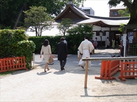 中門の階段を上る特別客 |