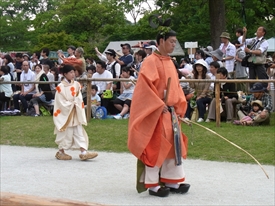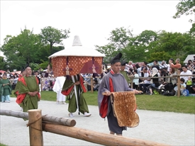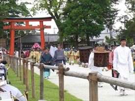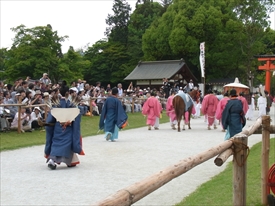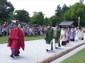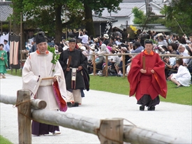 勅使を祭場に案内する「前導」。上賀茂神社の神職が担当。 |