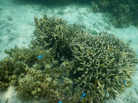 セダカスズメダイ。動画は こちら と こちらと こちら