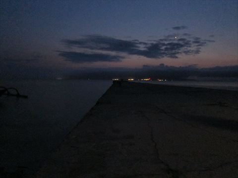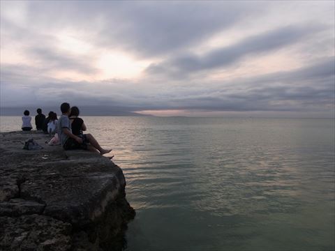 西桟橋で夕日見学。 |
