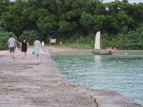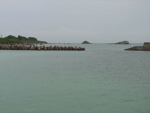 連絡船乗り場から昨日シュノーケルしたミサシを見る。 |