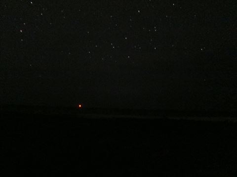 南十字星を見に南中する0時20分ぐらいに真っ暗の道を自転車でアイヤル浜に。しかし、満天の星にかかわらず南十字星だけ雲で見えなかった。下の写真では右下に見えるはずだった(左上はさそり座) |