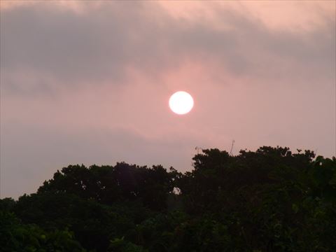 宿から見える朝日 |