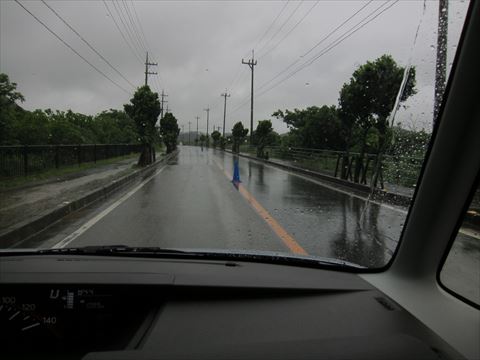 朝、時間があったので石垣島内を道路のコーンは石垣島トライアスロンのもの。15年来初めて大雨で中止。 |