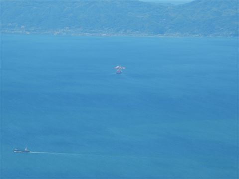 左の写真の中央。大きなクレーン船 |