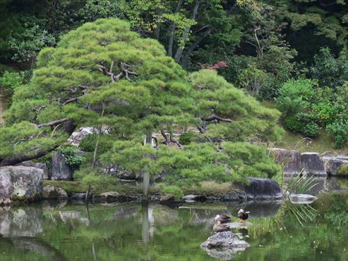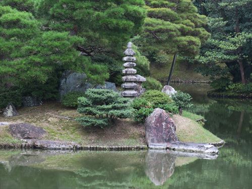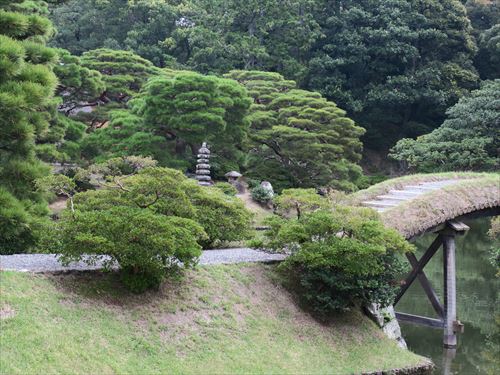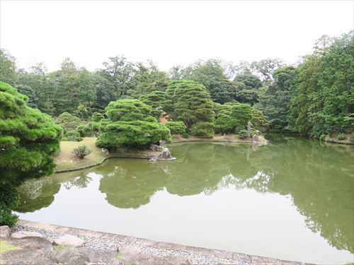 口の間からの眺め。右から中が中島。奥が松翠亭。松の造形(モコモコ感)が素晴らしい |