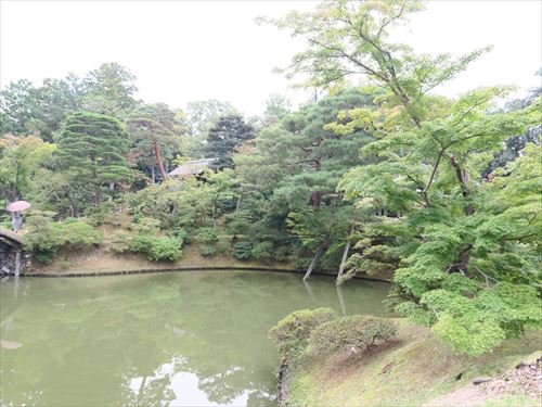 秋の茶亭である月波楼から冬の茶亭である松琴亭を望む |