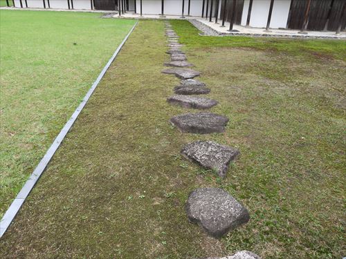 月波楼の入口を西側から。手前の道は中門や御輿寄に続く |