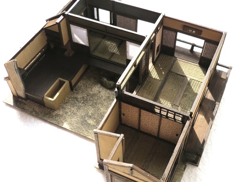 1/50の模型。作られた方のHPはこちら。右下から反時計回りに中の間、二の間、一の間、膳組所、土間 ![]() |