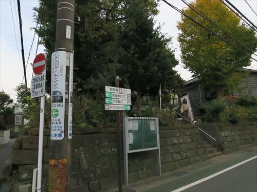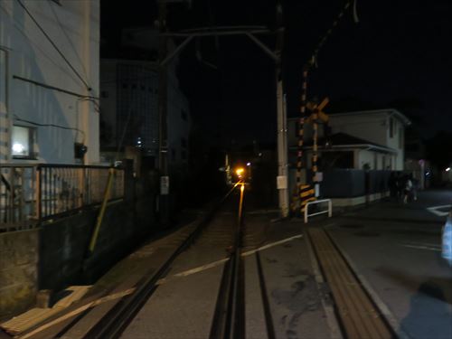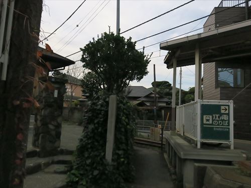 北側、すぐ横を江ノ電が走る。 |