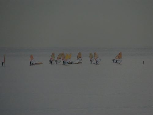 たぶん、大学生の部活。学連の公式艇はボールペンで有名なBICのテクノ293 ワンデザイン。 |