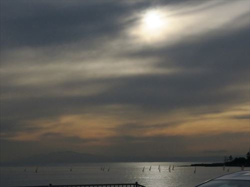 ベタ凪。左は逗子マリーナ |