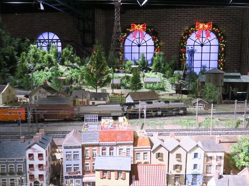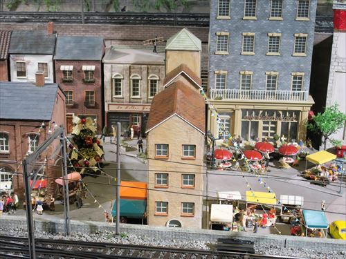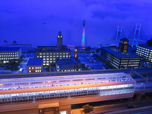 別の部屋に横浜を模したレイアウトがあった。手前は 桜木町駅。中左が税関、中右が神奈川県庁 |