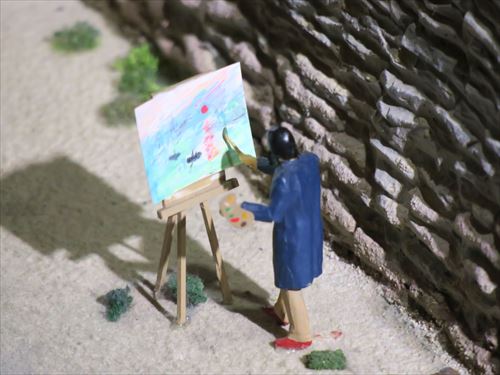 海辺にいる画家。これはモネで絵が「印象 日の出」。他に3人画家がいるらしい。 |