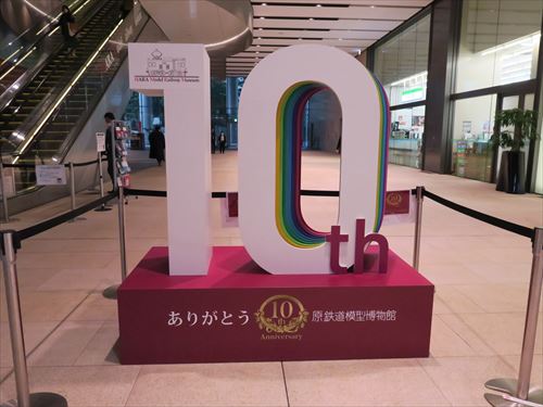 ビル1階の10周年記念のモニュメント、博物館は2階にある |