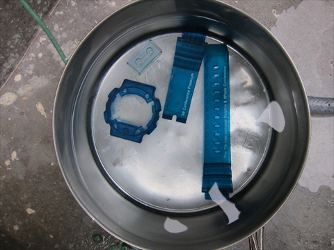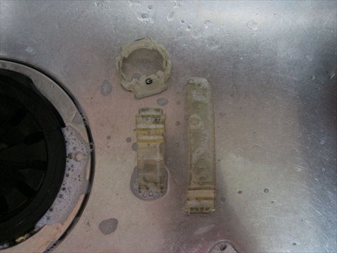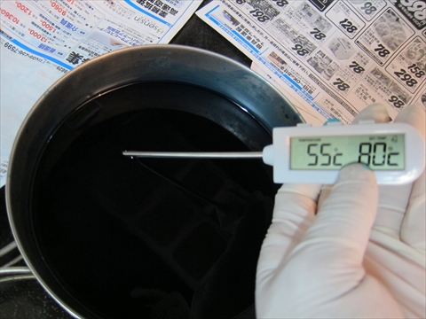 遊環はRevyさんによると鍋に触れて火傷しない程度とあったので55℃になってから投入。他のパーツを漬けてから15分経過。 |