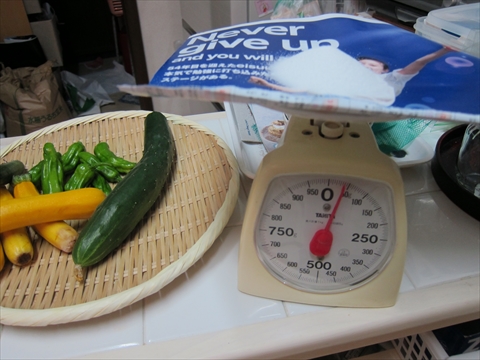 色を定着させるための塩を30g。隣は自宅で取れた野菜。 |
