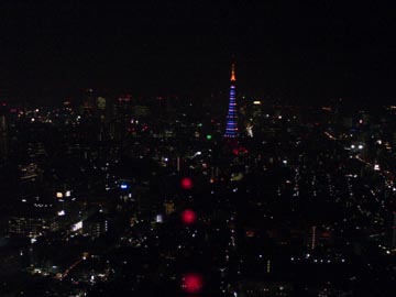 六本木ヒルズ42階から。真ん中の森の手前の家が孫氏の自宅 新宿方面 「女性に対する暴力撤廃」の特別イルミネーション |
