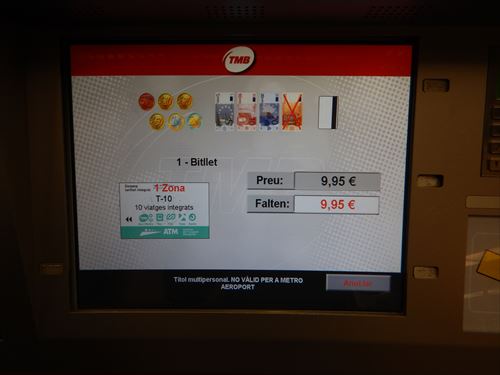 地下鉄の切符を買う。右上のTー10(10回分)を選択 |