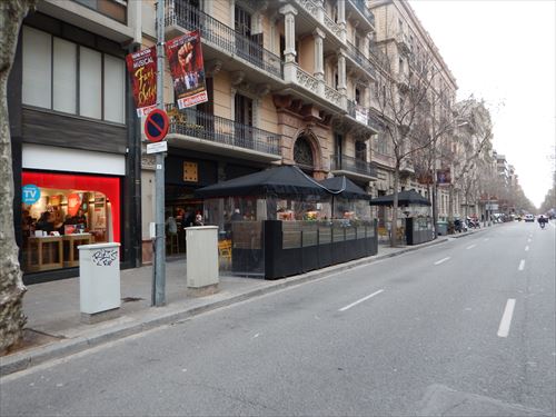 これから入る飲食店からカレル・デ・マヨルカ通りの南西方向を望む |