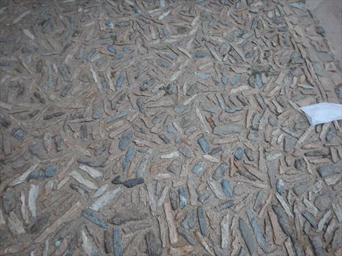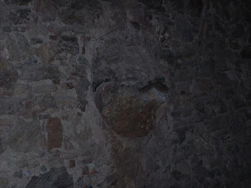 写真右の壁にある「丸い穴」は、サボテンの植木鉢になる予定だった。 |