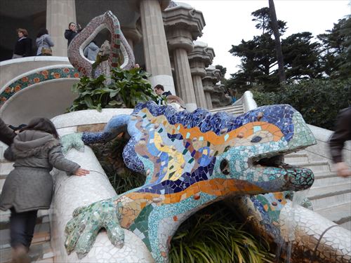 グエル公園のシンボルにもなっている「第3の噴水のトカゲ像」 |