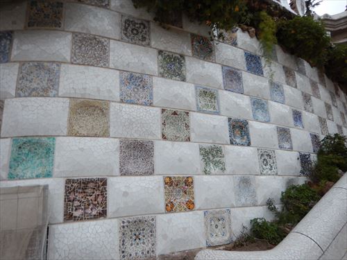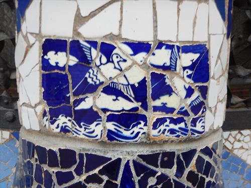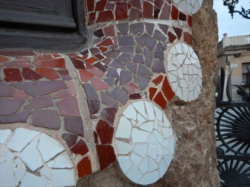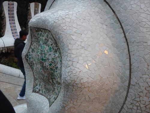 トカゲは薄いレンガをベースにプレハブ工法で現地で組み立てられ、表面にはトレンカディス(粉砕タイル装飾)が施されている。 |