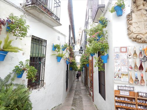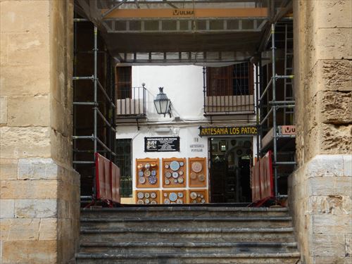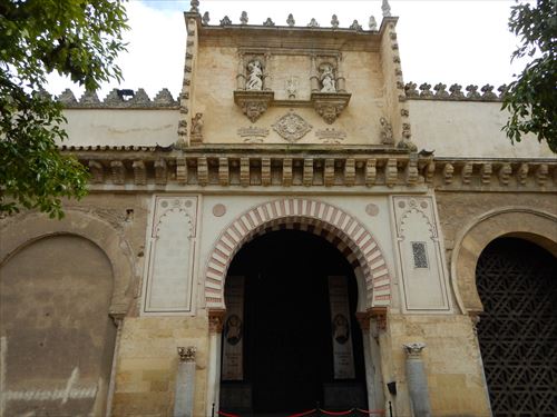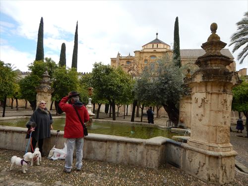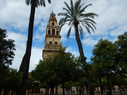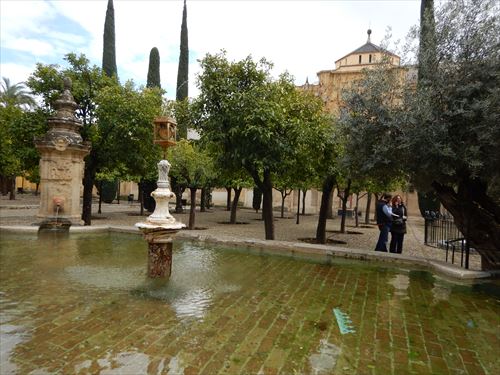 メスキータ。ここはオレンジ・コートと言われ、モスク時代に前庭と祈りの間の間は19もの開放口によって隔たれることなくつながっていた。さらに、円柱の間の柱がそのまま外にまで続いているかのように演出するために、古くはナツメヤシや月桂樹が植えられていた。現在は糸杉とオレンジの木が植えられているためこの名で呼ばれる。