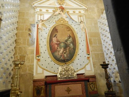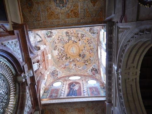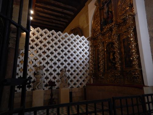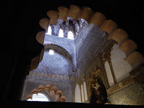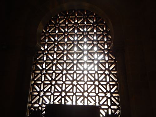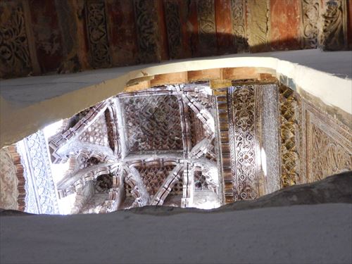 ミフラーブの前のスペース。 「マスクーラ」と呼ばれる特別に仕切られた席。金と青で描かれた文様が隙間なくあり、 窓からの光で良く見える工夫もされている。