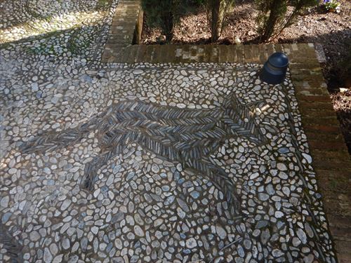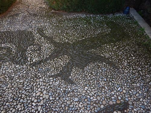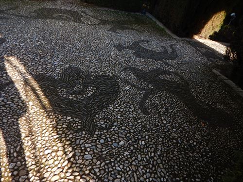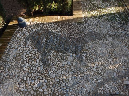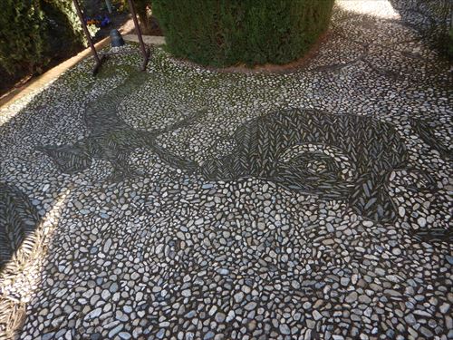 グラナダのシンボル柘榴(ザクロ)。殻がものすごく固い柘榴は, なかなか陥落しなかったグラナダ王国を表し、それがパックリ口をあけているのは、「鉄壁のグラナダ王国を、カトリック両王率いるキリスト教国がようやくこじ開けた」という意味がある。 |