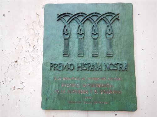 premio hispania nostra スペインの文化、自然遺産を守る組織の賞を得たことを示すプレート。詳しくはこちら |