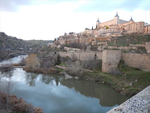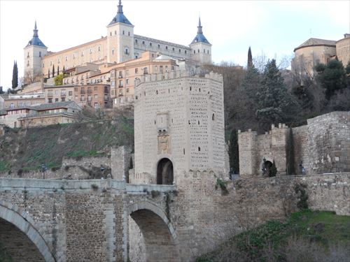 橋はアルカンタラの街と同様アラブ語で、放水路を意味するアル・カンタラトに語源を持ち、全長194m、高さ71m。ローマ時代の106年頃に完成され、当時の皇帝のトラヤヌス帝をたたえるために建設された。その後、西ゴート王国、イスラム時代にも損傷を受けるたびに改修が加えられている。10世紀の改修では3つ目のアーチは取り外され、馬蹄型の通路に縮小された。1257年の洪水で橋が大幅に被害を受けると、カスティーリャ王国(後のスペイン王国)のアルフォンソ10世が大規模な改修と増築を行った。この際にムデハル様式の西搭が追加されている。そして、イスラムからの脅威に備えるため、武器を飾る壁も増築したが、この時はイスラムの脅威を払いきれてはいなかったため、壁のグラナダの果実(イスラムの象徴)の彫刻は欠けた状態で彫られた。1721年にはアラブ様式の搭が荒廃したため壊し、バロック様式の凱旋門に取り換えた。入り口の門には、ハプスブルグ家の紋章である双頭の鷲が取り付けられており、橋の搭にはカスティーリャ王国とレオン王国の紋章も残されている。 |