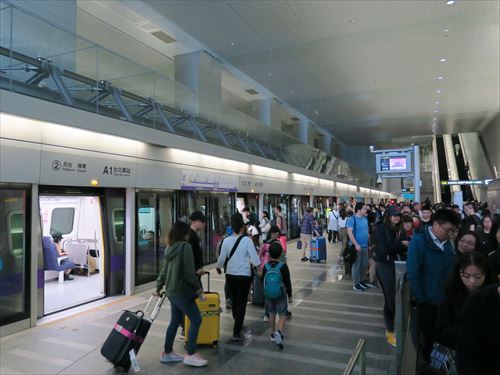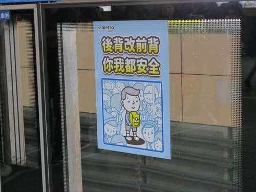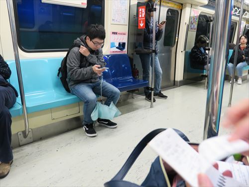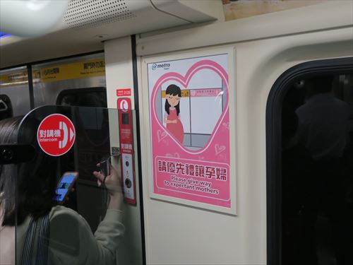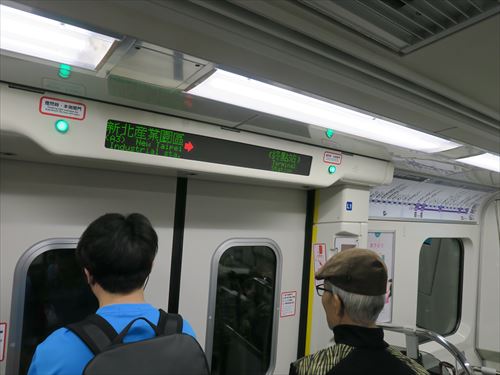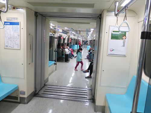 再びMRTに乗って南港駅へ。紺色のシートが博愛座(Priority seat)。シートはプラスチック。 |