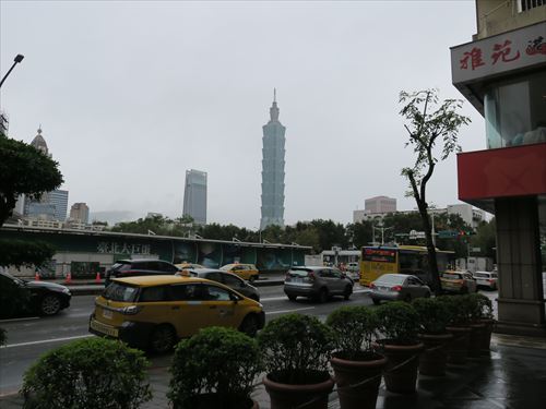 国父記念館駅からホテルへ歩く。台北101が見えた |