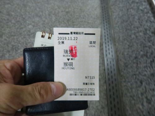 ここから猴硐へはタクシーの予定だったがちょうど列車があったので切符を買う。瑞芳の隣の駅なので運賃は15台湾ドル |