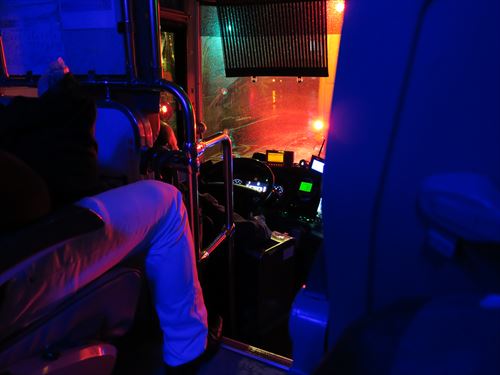 九份から台北市内の松山駅までのバス(1062系統)の中、1人100元。72時間はMRTだけなので現金で支払(先払)。途中高速道路を通る。