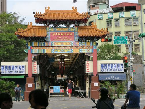 珍果の前から華西街夜市の入口が見える |