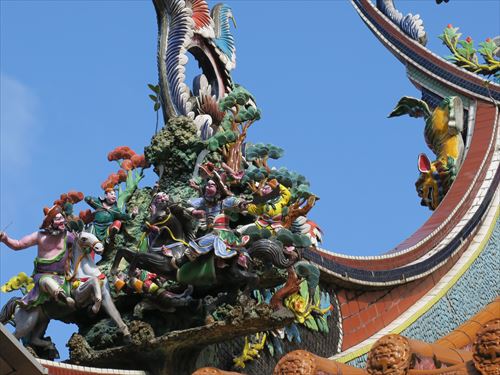 大稲埕慈聖宮は媽祖や天后と呼ばれる航海の守護神、天上聖母を祀ったもの。法主宮・霞海城隍廟と合わせて大稲埕三大廟と並び称される。正門の対聯には「第一門開観音山拱秀、数千艇聚奎府水流輝(大門を開ければ観音山の美しい風景が取り囲んでいる。奎府の船着き場には数千艇が集まり、水面は輝いている)」とあり、古今の慈聖宮の変遷が分かる。同治5年(1866年)の創建時には、慈聖宮はもともと現在の西寧北路と民生西路の交差地点に建設されていたの。廟の目の前には大陸との貿易を担った特別港の「対渡口岸」があり、南北に流れる淡水河岸を見渡すことができた。八里区の観音山も慈聖宮の右前方に横たわっていました。ところが1910年、日本の総督府により市区の改正が行われ、廟は取り壊された。そこで、地元の同安人たちが資金を集め、延平北路の現在地に再建した。もともとの梁柱と石材を利用して1914年に落成した廟は、昔の姿を今に伝えている。