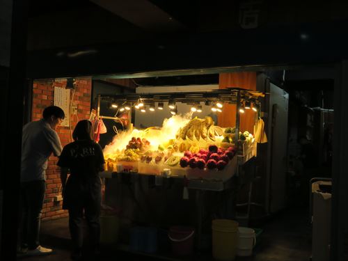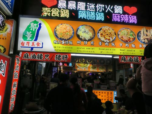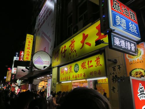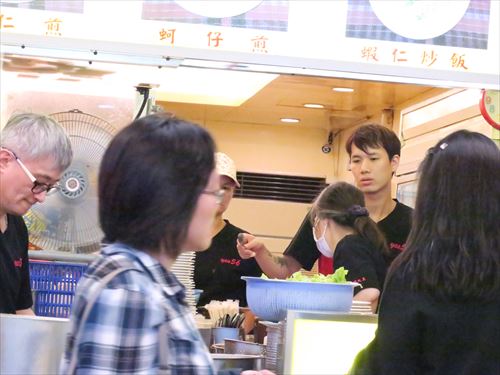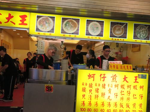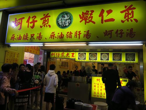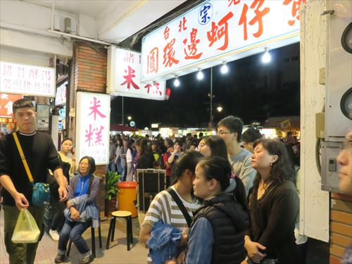 牡蠣のオムレツの名店「蚵仔煎大王」の入店の列に並ぶ |