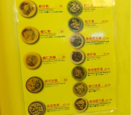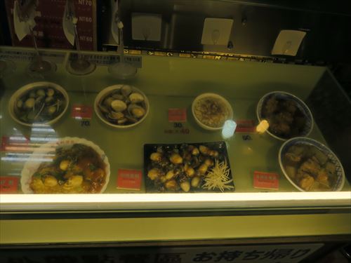 上左から?、ハマグリスープ、ワンタン、鳥の唐揚げスープ 牡蠣のオムレツ、牡蠣のニンニク焼き、大根と鳥の唐揚げスープ |