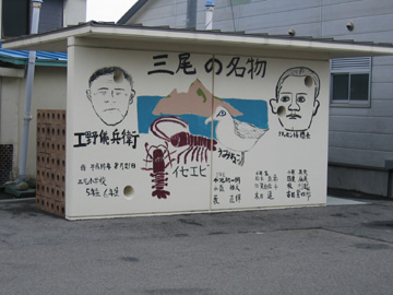 三尾のバス停の公衆トイレの壁画 |