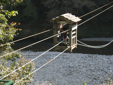 野猿とは人力ロープウエイ。乗車賃は無料。