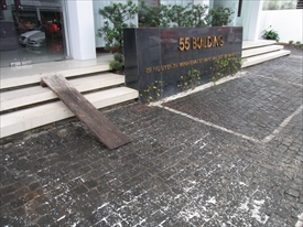 上の銀行の前は米がまかれている |