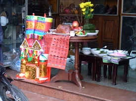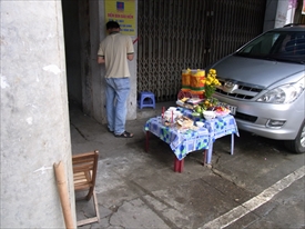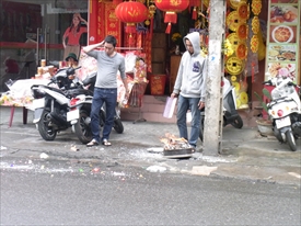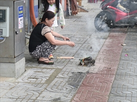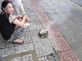 ここでもテトの前祝いでお札を燃やす |