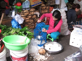 こちらはらっきょの皮むき中 |