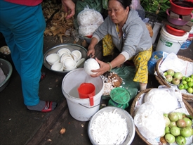 こちらはココナッツの実をかき氷機でスライス |