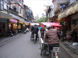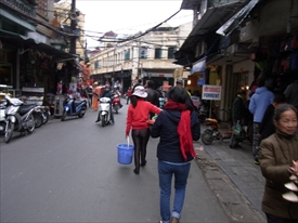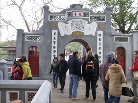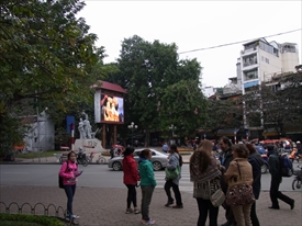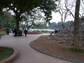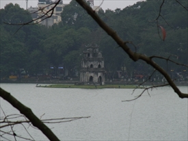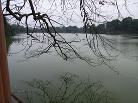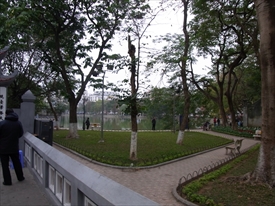 ホアンキエム湖北、中左は戦没者記念塔。その右と奥は靴屋通り |